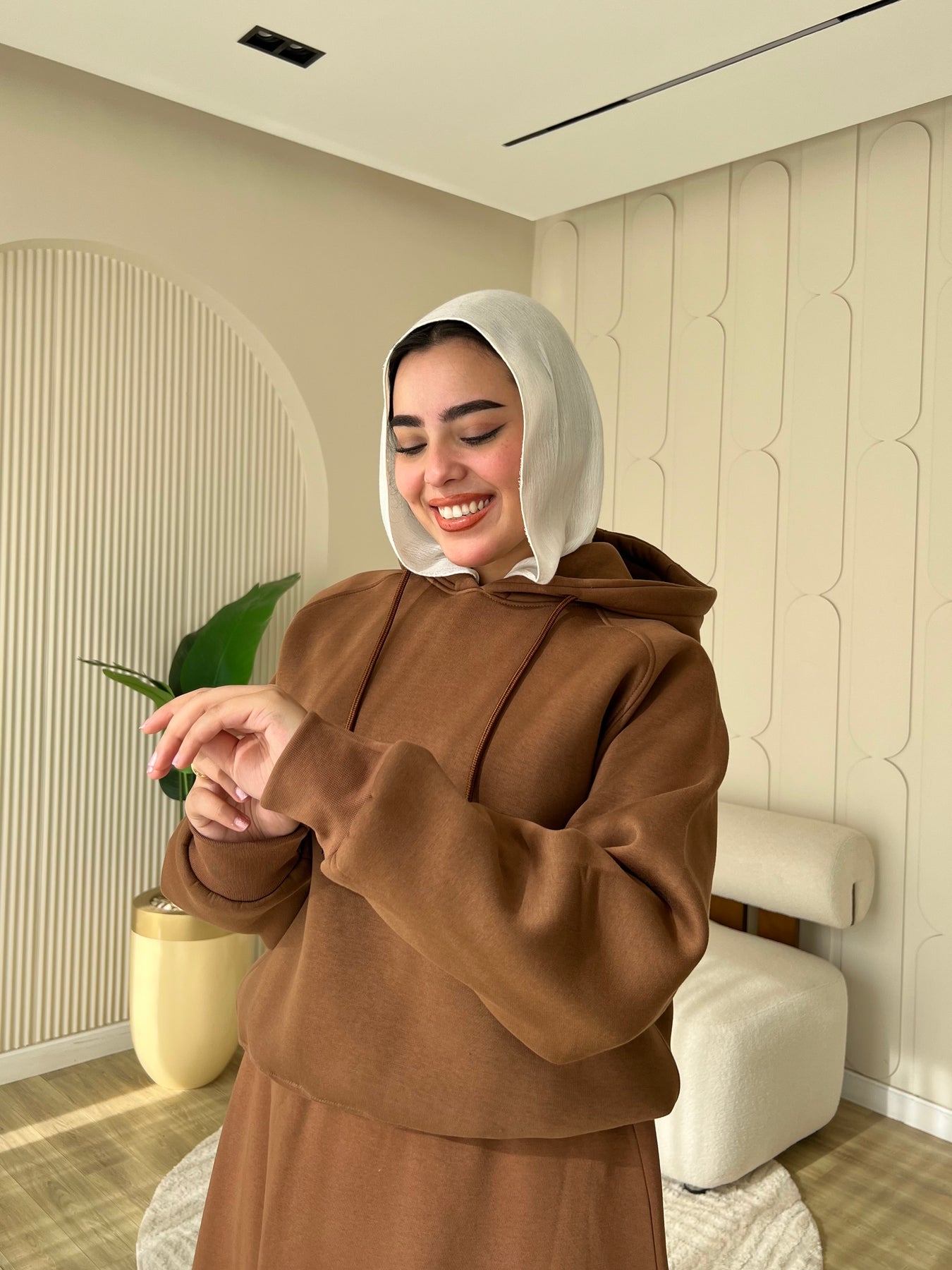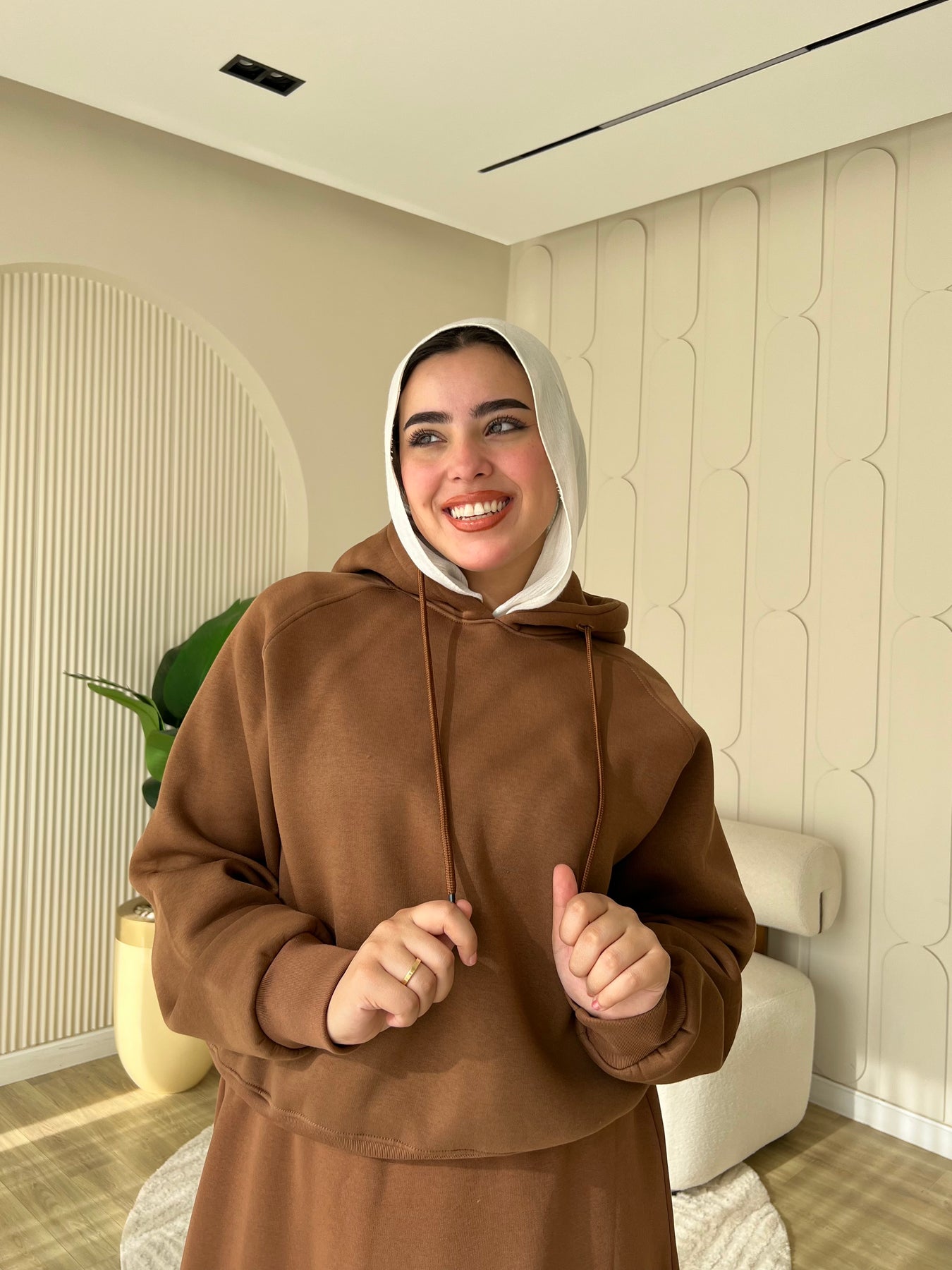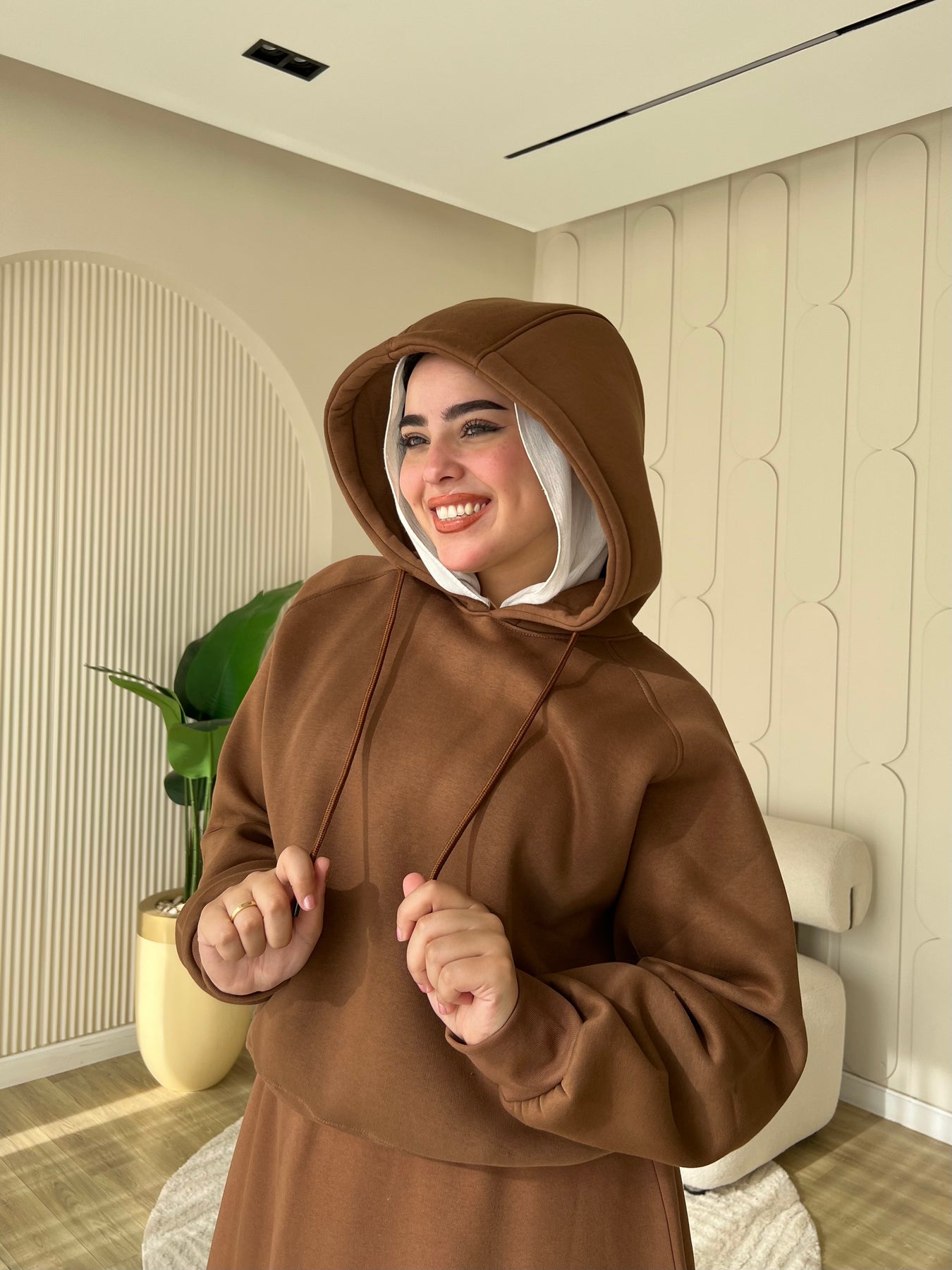 الطقم مكوّن من هودي مريح بتصميم عصري وجيبة أنيقة بقصّة بسيطة تناسب اللبس اليومي والخروجات الكاجوال.